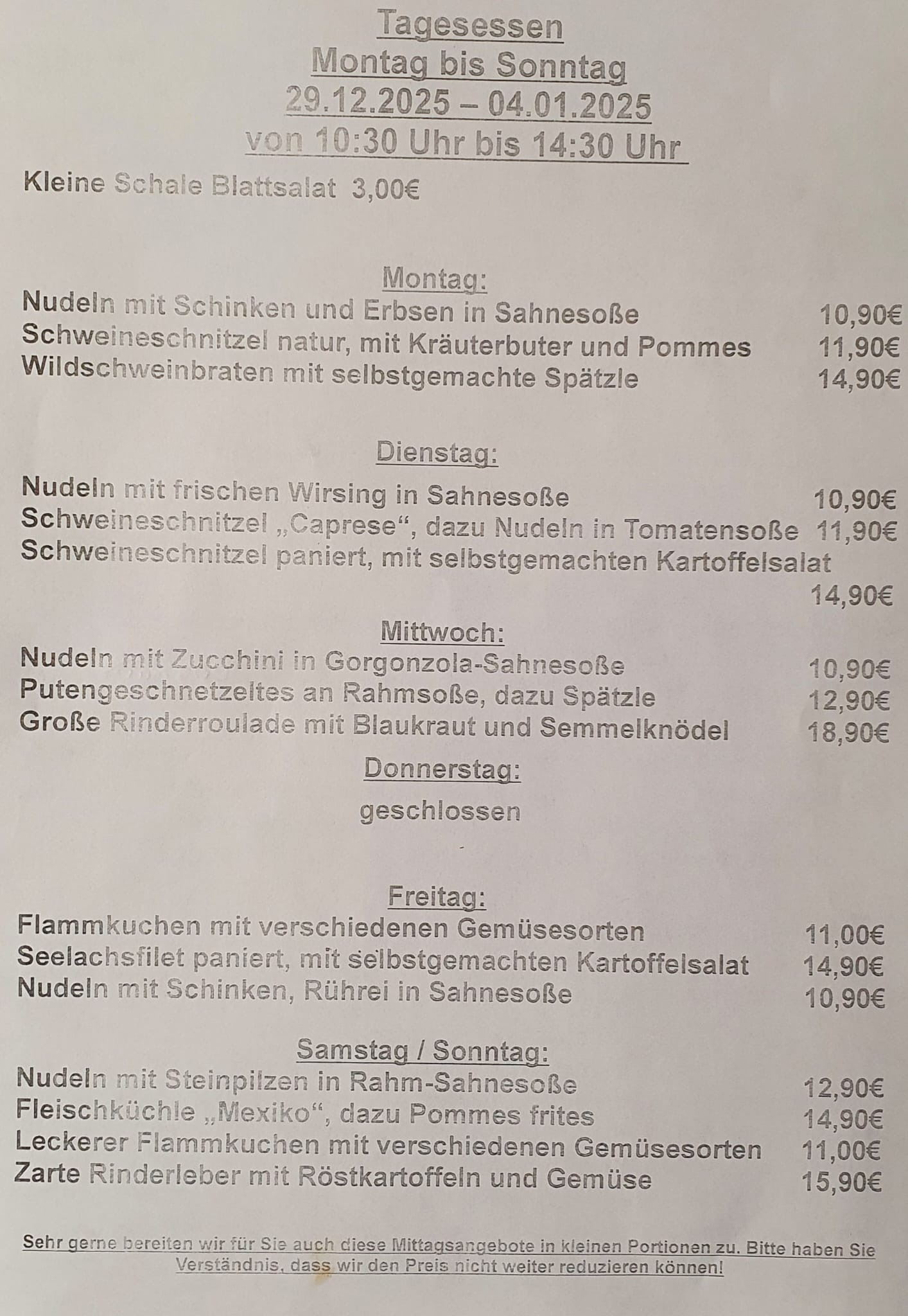 Wir legen auf Frische und hausgemachte Zubereitungen Wert. Haben Sie daher bitte Verständnis wenn es etwas länger dauern kann. Der Geschmack unserer Gerichte wir Sie überzeugen;)